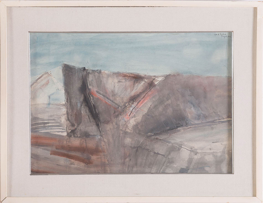 Lidia Puglioli (S. Lazzaro di Savena 1919 - Bologna 2013), “Paesaggio informale”, 1968. Tempera e tecnica mista su carta, firmata e datata in alto a destra Lidia Puglioli 1968, H cm 33.5x48