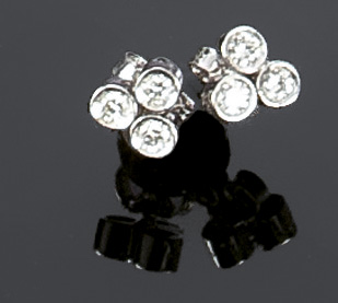 Lotto 383 | COPPIA DI ORECCHINI Coppia di orecchini in oro bianco con sei diamantini...