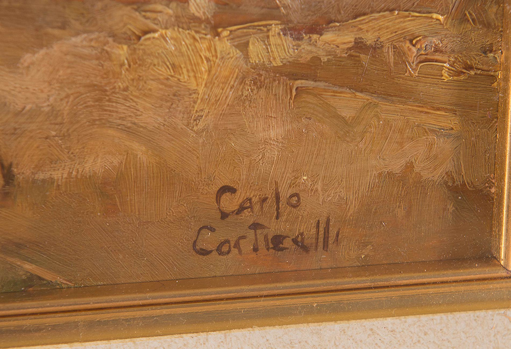 Carlo Corticelli (XX sec.), “Marina”. Olio su tavola, firmato in basso a...