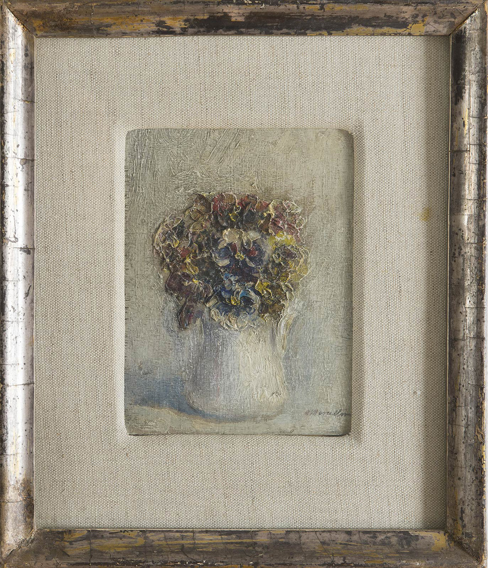 Norma Mascellani (Bologna 1909 - 2009), “Vaso con fiori”. Olio su tavola, firmato in basso a destra Mascellani, H cm 15x11