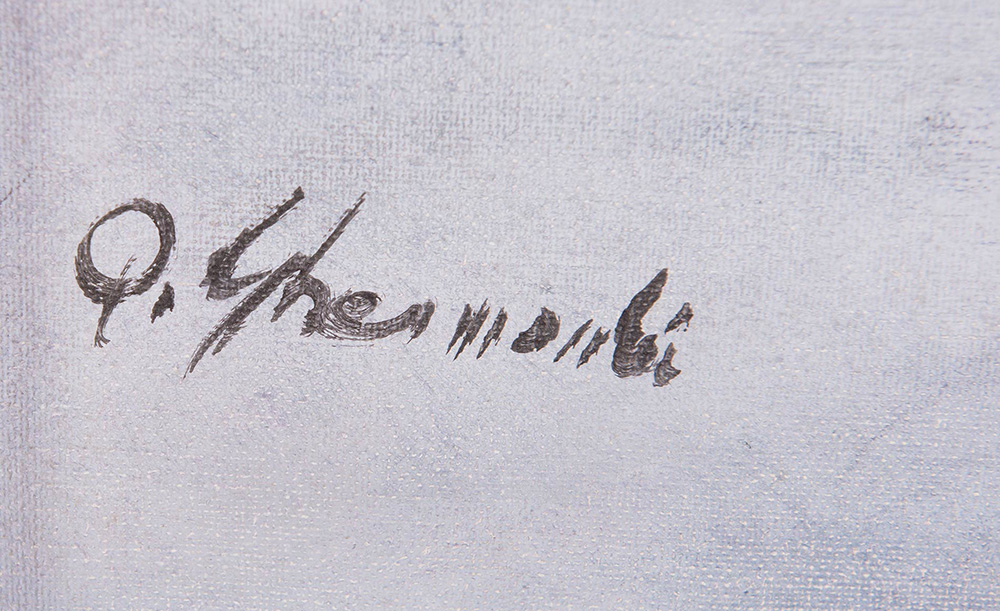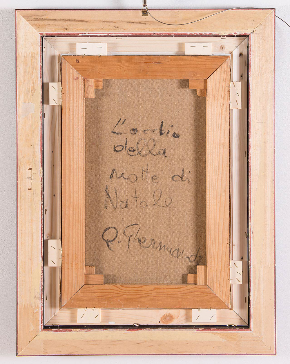 Quinto Ghermandi (Crevalcore 1916 - San Lazzaro di Savena 1994), “L’occhio della notte di Natale”. Olio su tela, firmato in basso a sinistra Q. Ghermandi, al retro titolo e firma ‘L’occhio della notte di Natale’ - Q. Ghermandi, H cm 60x40