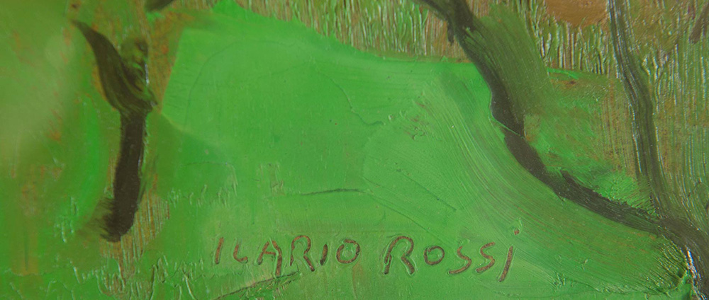 Ilario Rossi (Bologna 1911 - 1994), “San Luca”. Olio su faesite, firmato in basso al centro Ilario Rossi, al retro reca iscrizione ‘Olio autentico Ilario Rossi’, H cm 19.5x28