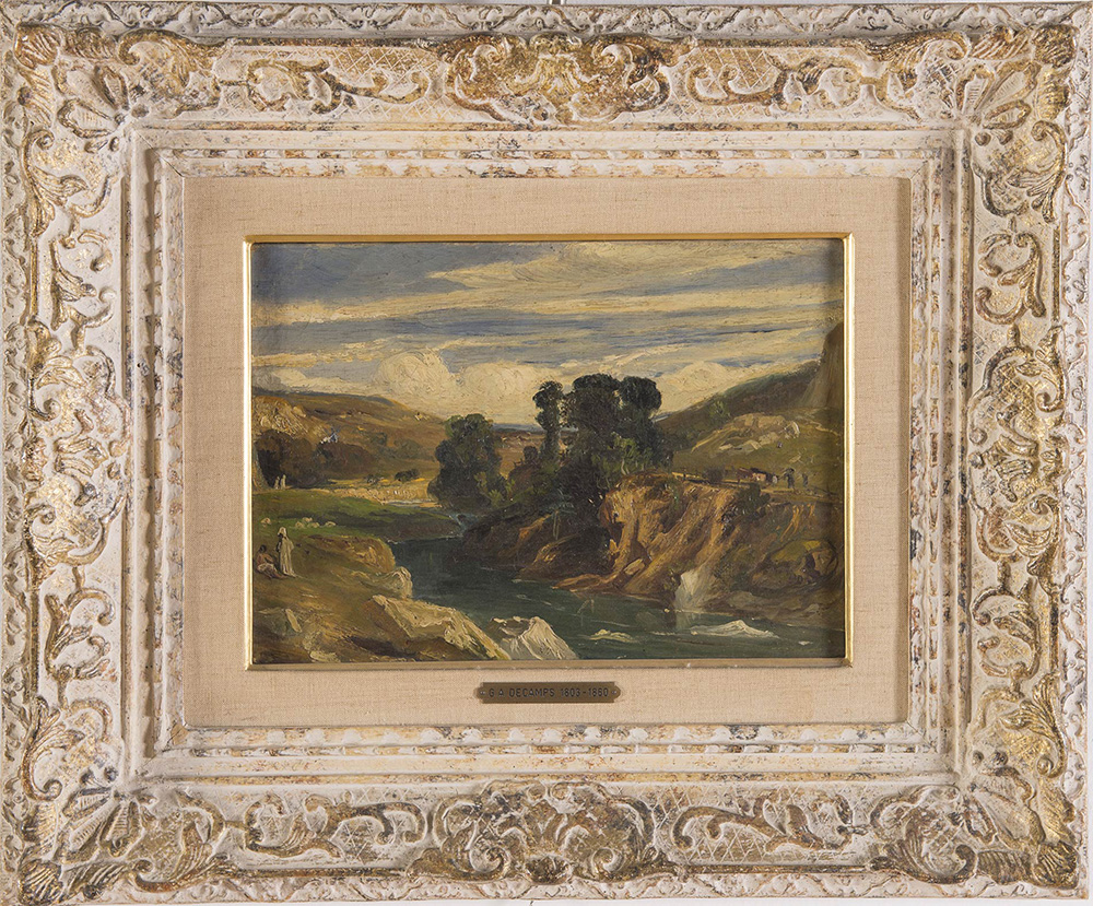 Alexandre-Gabriel Decamps (Parigi 1803 - Fontainebleau 1860), “Paesaggio”. Olio su tela, opera siglata e datata al retro DC 1831, H cm 25x34
