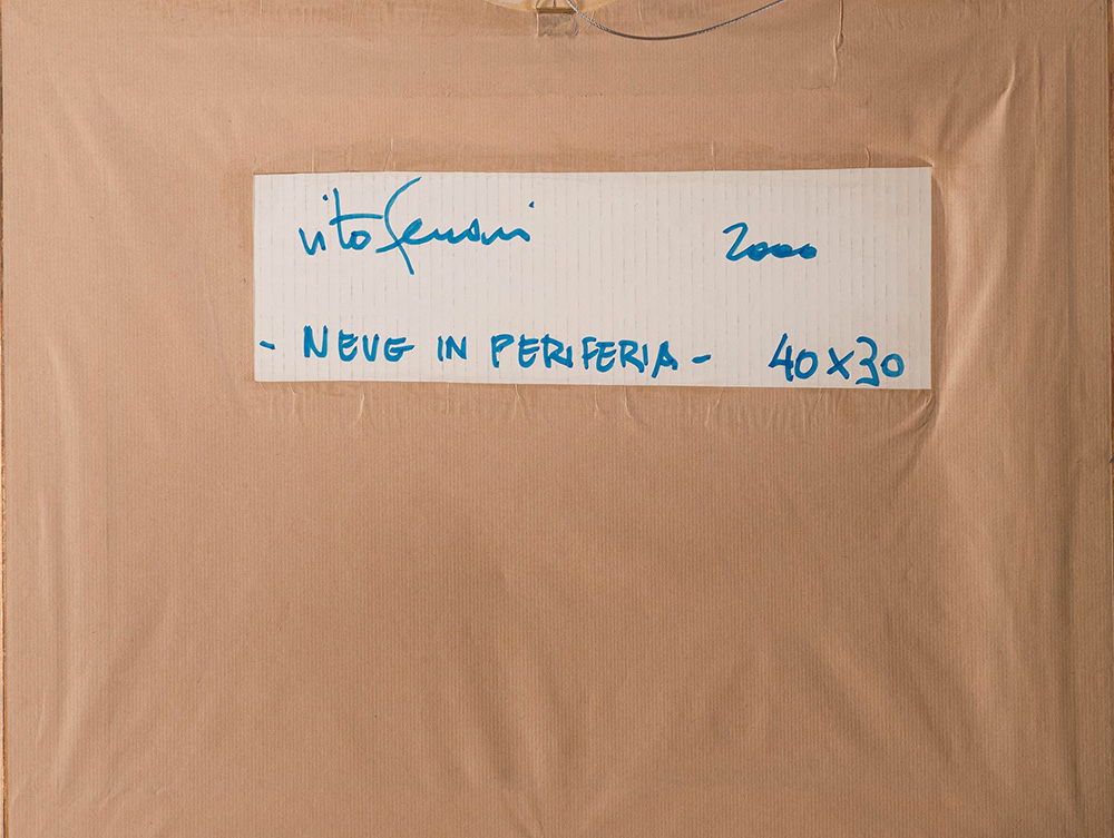 Vito Ferrari (Rovigo 1928), “Neve in periferia”, 2000. Olio su cartone, opera...