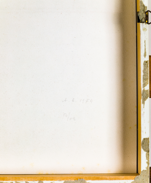 Sigla dell'Artista, datazione e numerazione (Esemplare 50/72) a matita al retro