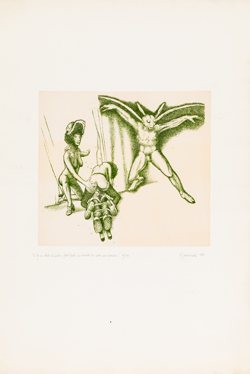 GIUSEPPE GUERRESCHI (1929-1985)Elfo con testa d'insetto e Mrs Fuseli in...