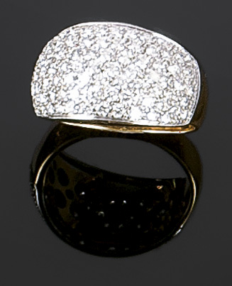 ANELLO Anello in oro giallo, sommità in oro bianco, con pavé di diamanti taglio brillante rotondo per complessivi ct 1,40 ca Peso gr. 7,7 Misura 15,5