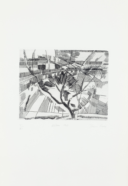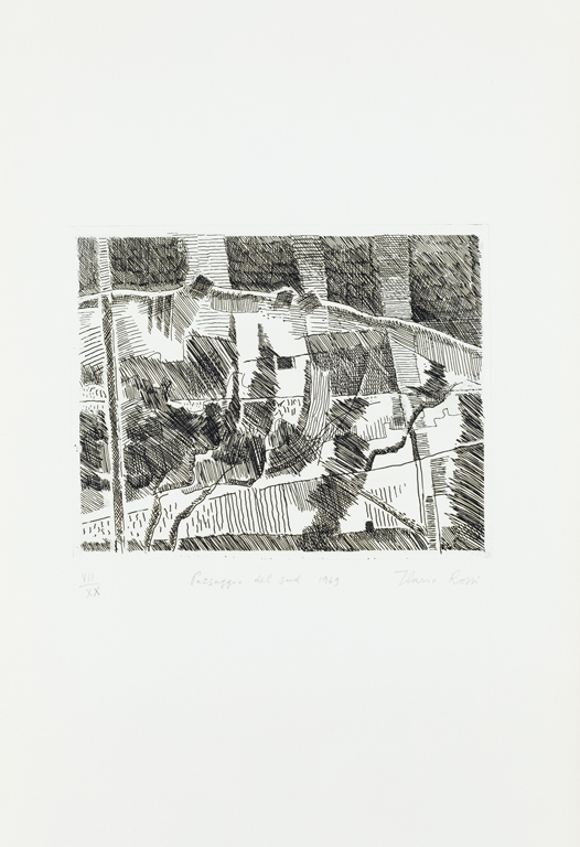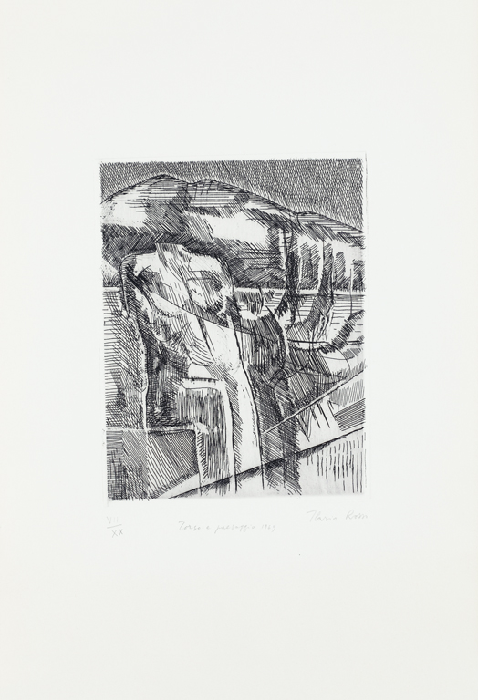 Ogni acquaforte reca firma, titolo (Paesaggio del Sud, Albero, Figura e nudo, Nudo e sogno, Torso e paesaggio), datazione (1969) e numerazione (Esemplari VII/XX) a matita al fronte