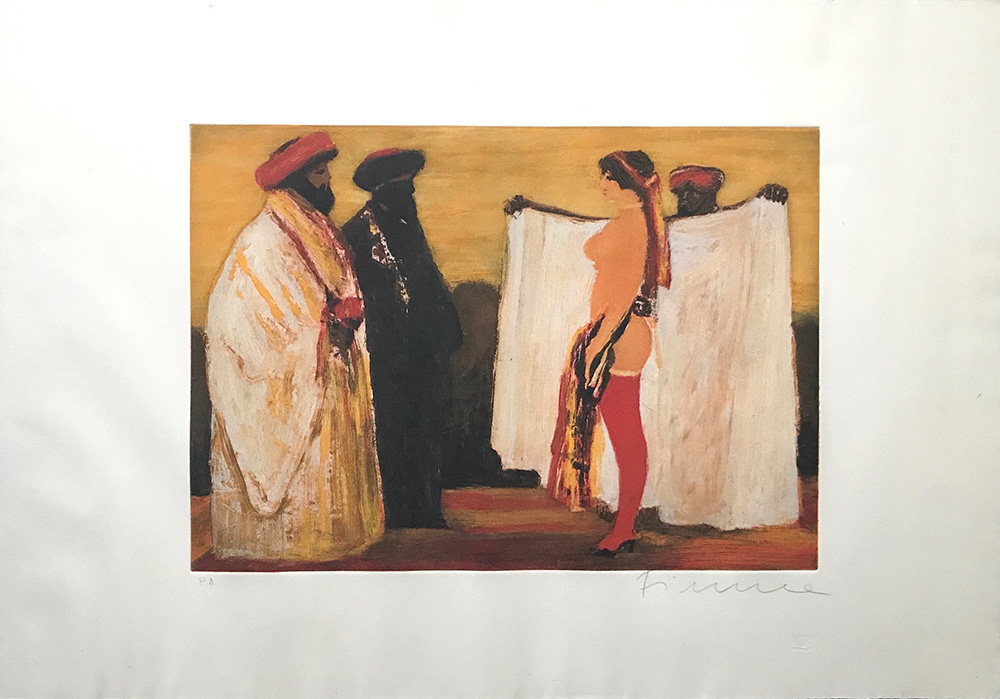 FIUME SALVATORE Comiso 1915 - Milano 1997 I sogni di Luisa serigrafia su carta 65x40 firma in basso a destra e tiratura PA in basso a sinistra Timbro a secco Fiume Controlled Pubblicazioni: Salvatore Fiume - I Sogni di Luisa, Rizzoli, in copertina