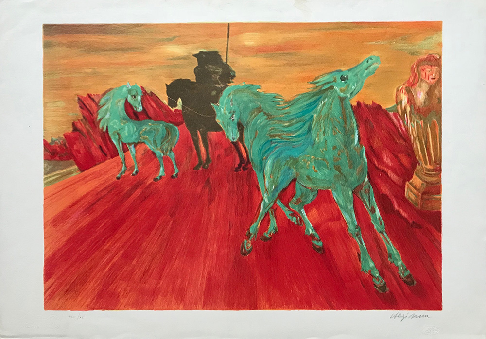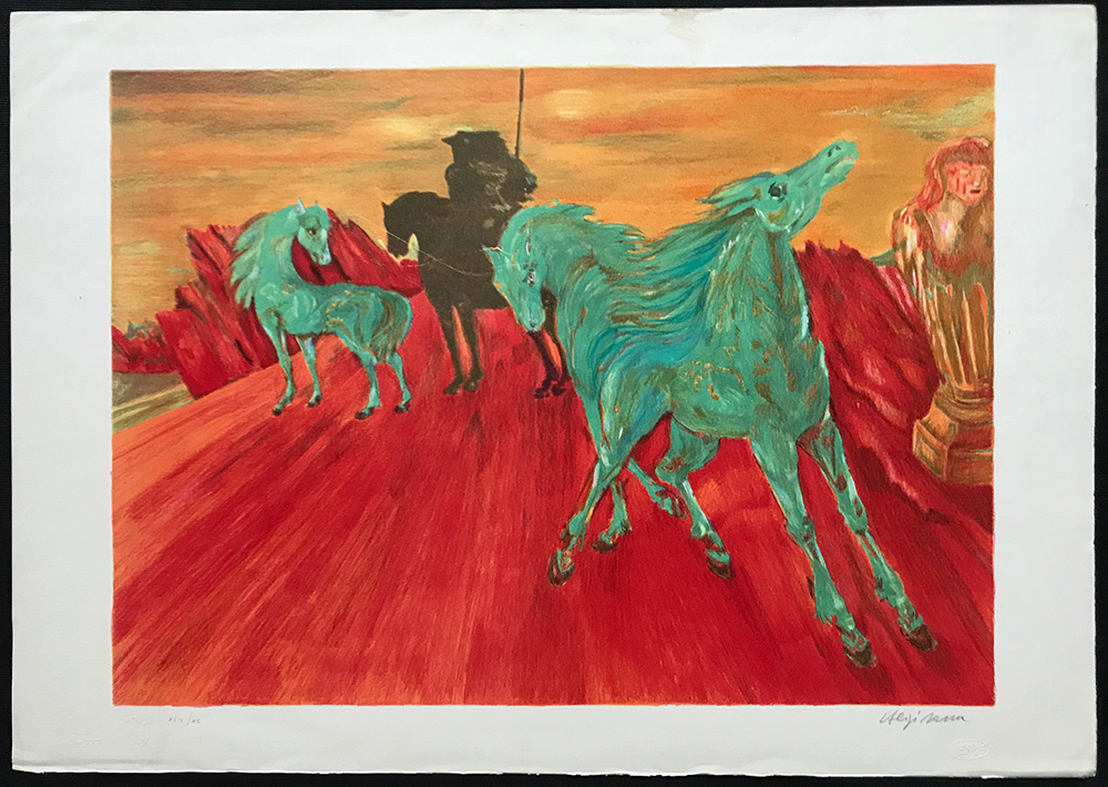 SASSU ALIGI Milano 1912 - Pollença 2000 Cavalli verdi litografia su carta 66x54 firma e data in basso a destra e tiratura XCII/XC a sinistra Pubblicazioni: Aligi Sassu Catalogo generale dell'opera grafica