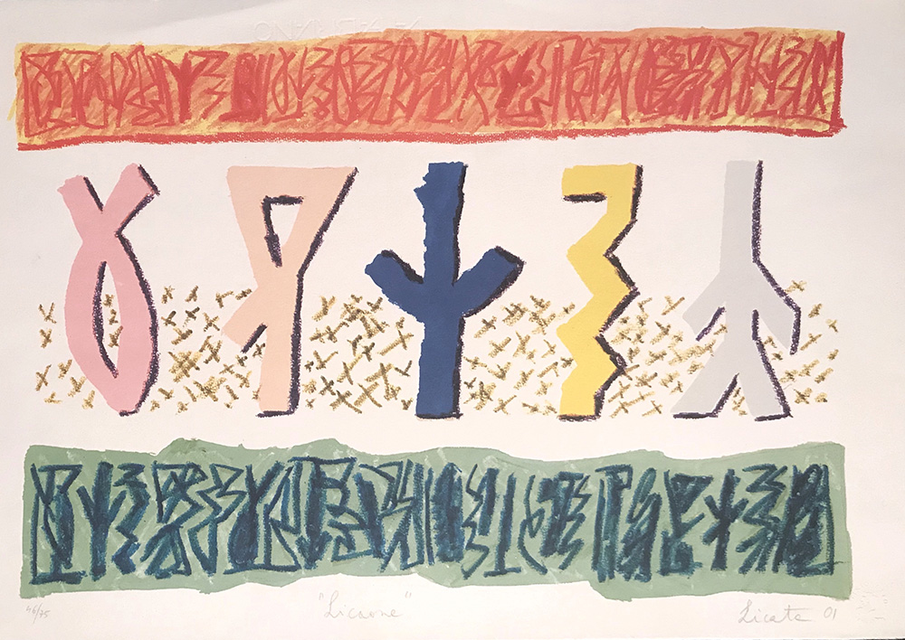 LICATA RICCARDO Torino 1929 - Venezia 2014 Licaone litografia su carta 50x35 firma in basso a destra, titolo al centro e tiratura sinistra 46/75 Timbro a secco Tintoretto Editore (VE)