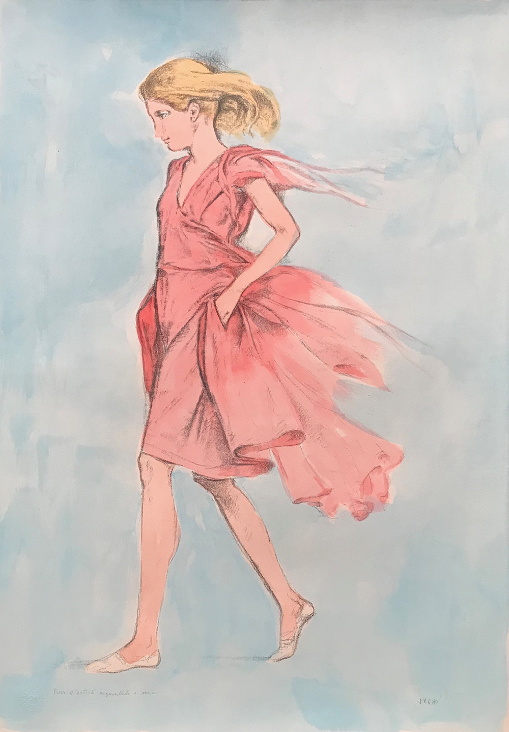 SUGHI ALBERTO Cesena 1928 - Bologna 2012 Ragazza litografia acquerellata 70x50 Firma in basso a destra e tiratura "Prova d'artista" a sinistra, esemplare acquerellato colorato a mano Certificato garanzia Grafica d'Arte Lombardi (RM)