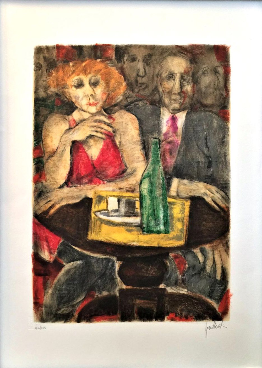 SQUILLANTINI REMO Stia 1920 - Firenze 1996 Al Bar litografia su carta 50x70 Firma in basso a destra e tiratura a sinistra