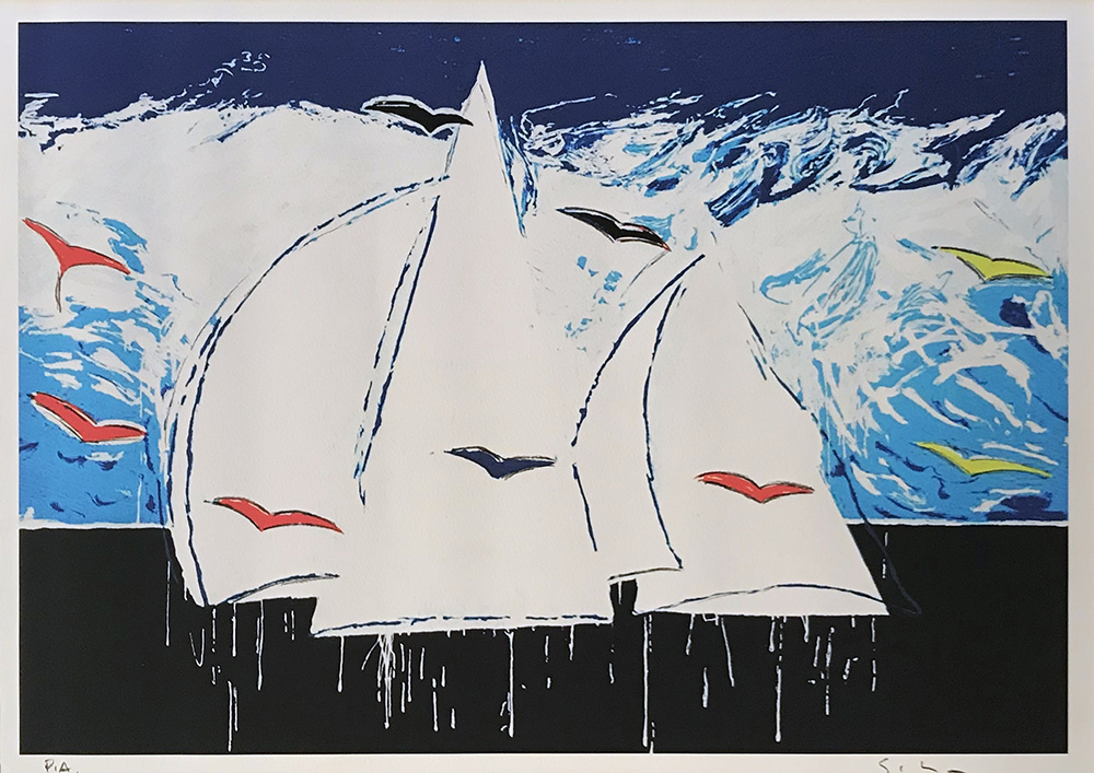 SCHIFANO MARIO Homs 1934 - Roma 1998 Vele litografia su carta 50x70 firma in basso a destra e tiratua PA a sinistra Certificato d'autenticità di Telemarket spa