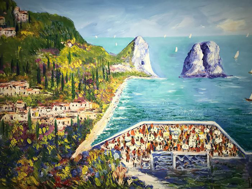 IALENTI ANTONIO Campobasso 1937 Capri e i suoi faraglioni olio su tela 70x50 firma in basso a destra firma data e titolo al retro Archivio di Violart su fotografia