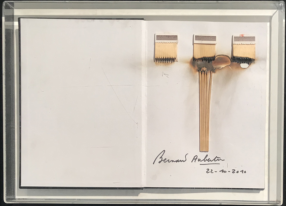 AUBERTIN BERNARD Fontenay-aux-Roses 1934 - Reutlingen 2015 Livre Rosenberg Brulè 2010 libro bruciato 45x31 Firma in basso a destra e data 22/10/2010 Autentica dell'artista su fotografia