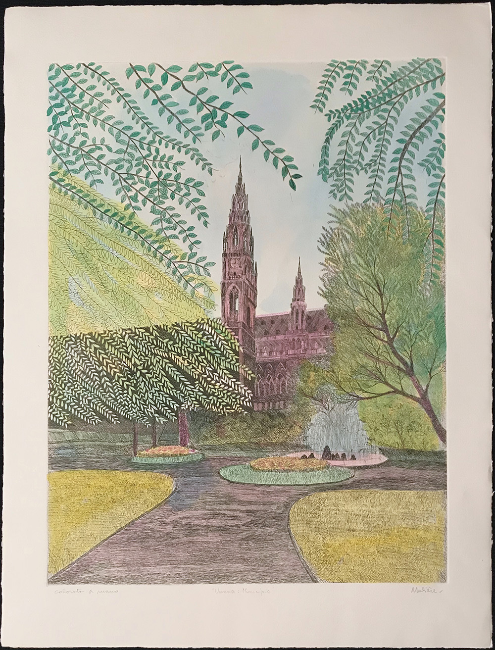 Lotto 99 | MULIÈRE Venezia : Municipio litografia colorata a mano 80x60 Firma in basso a...