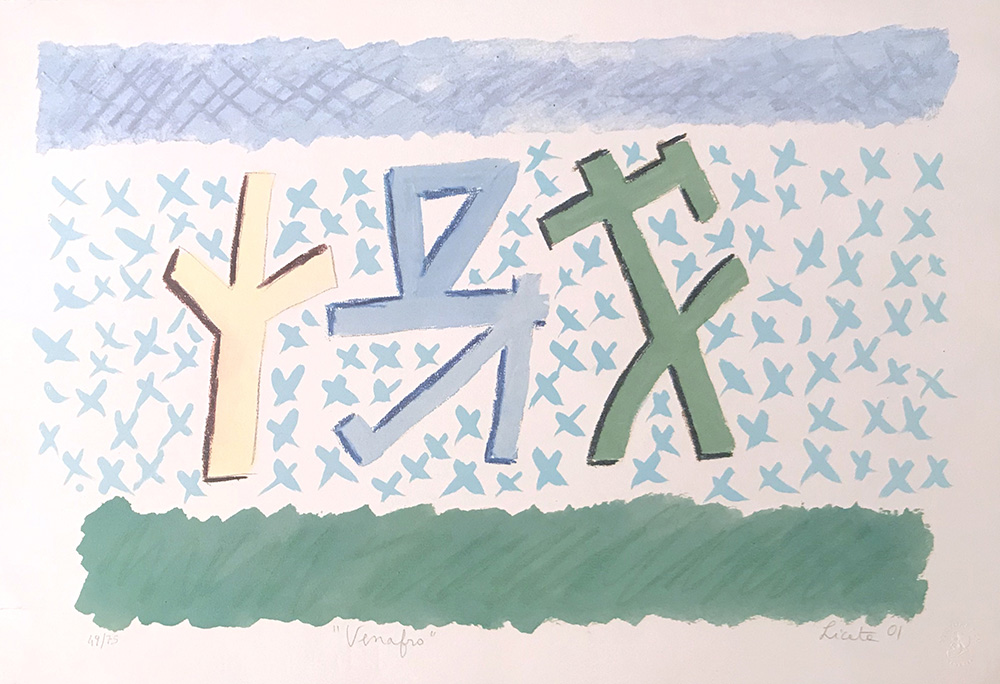 LICATA RICCARDO Torino 1929 - Venezia 2014 Venafro 2001 litografia su carta 50x35 firma in basso a destra, titolo al centro e tiratura sinistra 49/75 Timbro a secco Tintoretto Editore (VE)