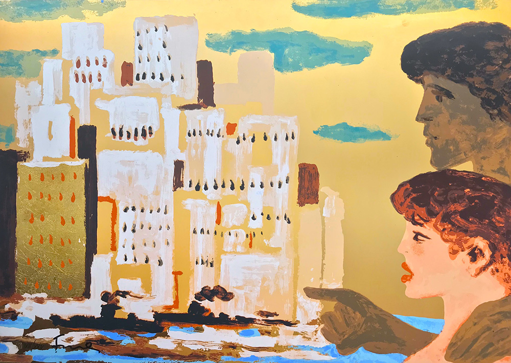 FIUME SALVATORE Comiso 1915 - Milano 1997 Senza titolo serigrafia su lamina d'oro 24K 50x70 firma in basso a destra e tiratura a sinistra Marchio di San Zanobi in basso a destra