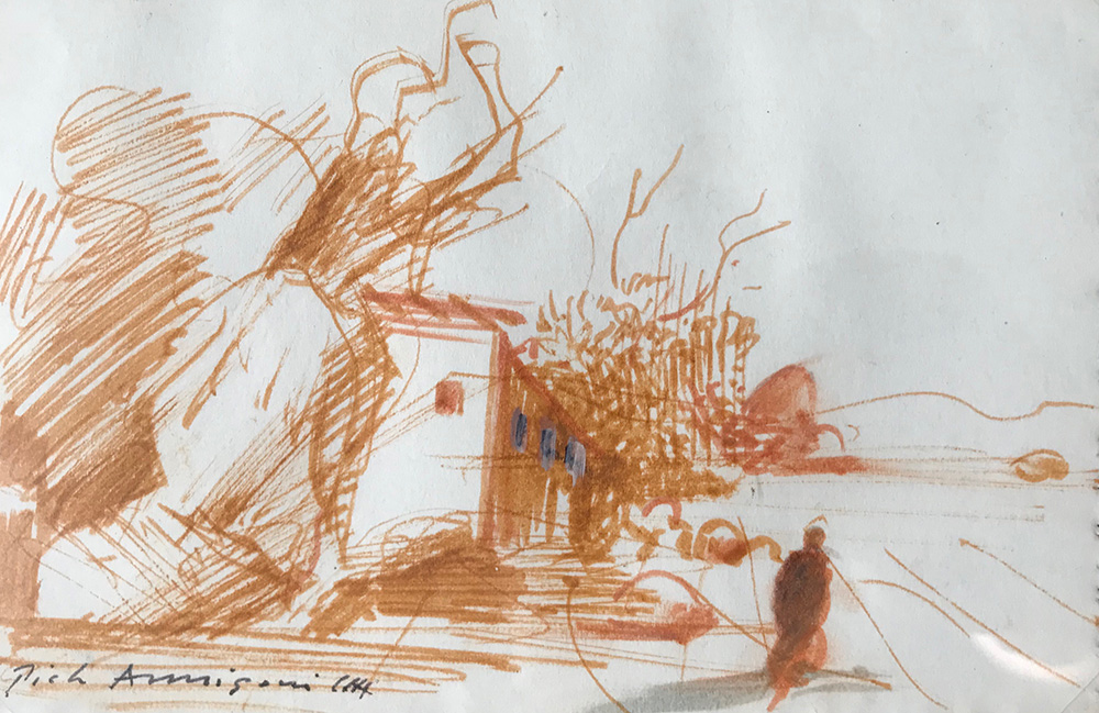 ANNIGONI PIETRO Milano 1910 - Firenze 1988 Paesaggio 18x13 sanguigna su carta Firma in basso a destra Autentica dell'artista su fotografia Nastro adesivo ai margini