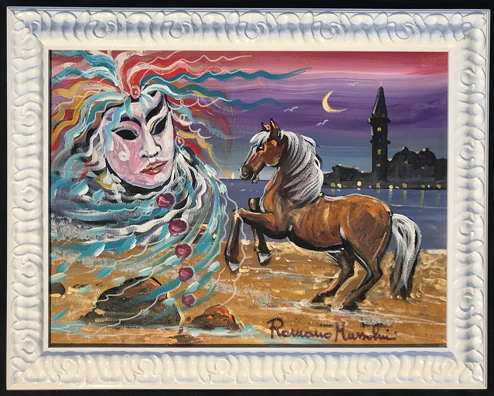 MUSSOLINI ROMANO Forlì 1927 - Roma 2006 Il destriero olio su tela 40x30 Firma...