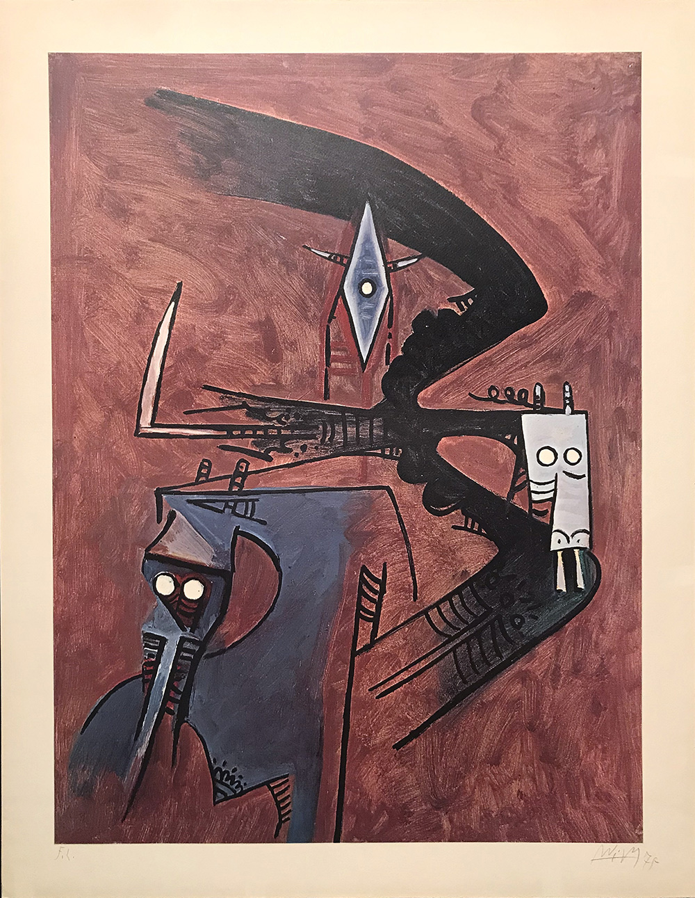 LAM WIFREDO Sagua La Grande 1902 - Parigi 1982 Senza titolo fotolitografia 65x85 Firma e anno in basso a destra, tiratura FC a sinistra Autentica su fotografia Galleria Spirale