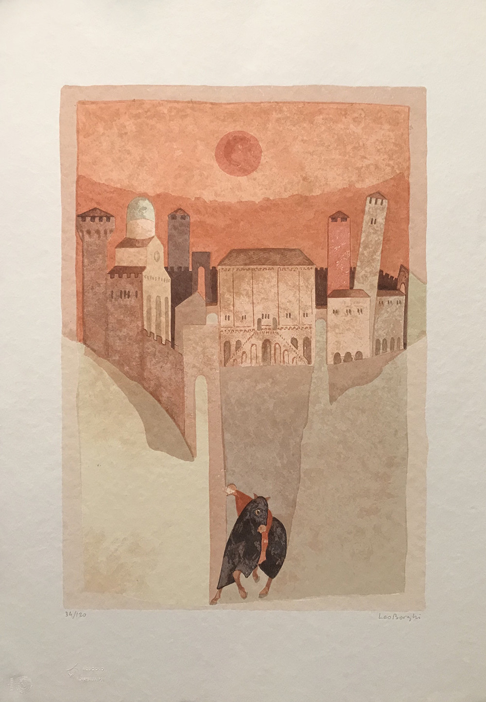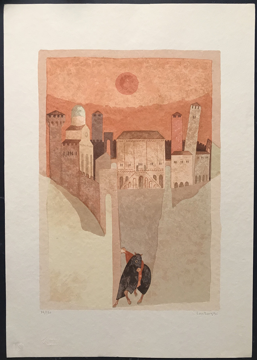 BORGHI LEO Montagnana 1937 Senza titolo litografia su carta 75x50 Timbro a...