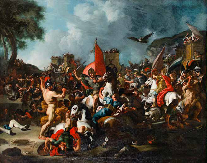 BOTTEGA DI FRANCESCO SOLIMENA BATTAGLIA DI ALESSANDRO CONTRO DARIO olio su tela, cm 101,5x129. Provenienza: Cercola, Collezione Mary Buonanno; Collezione privata. Bibliografia: L. Zanzi, Storia di Mary Buonanno Schellembrid: la biblioteca Braidense negli “anni di guerra” dal salvataggio alla ricostruzione, Hoepli, Milano 2015, p. 141 (ill.)