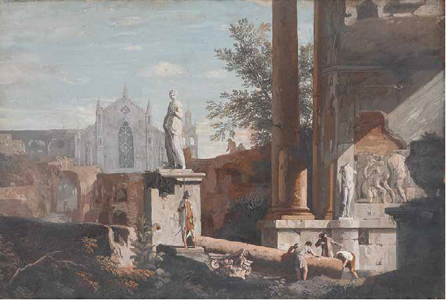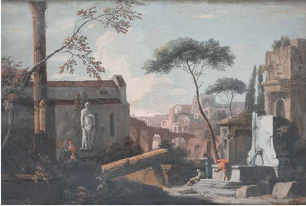MARCO RICCI Belluno 1676 – Venezia 1730 A) CAPRICCIO CON ROVINE E CHIESA GOTICA SULLO SFONDO tempera su carta, cm 31x46. B) CAPRICCIO CON ROVINE tempera su carta, cm 31x46. Provenienza: Firenze, Galleria Salocchi; Collezione privata Si ringrazia la Dottoressa Annalisa Scarpa per aver esaminato e confermato l’autografia delle opere sulla base del materiale fotografico ad alta definizione