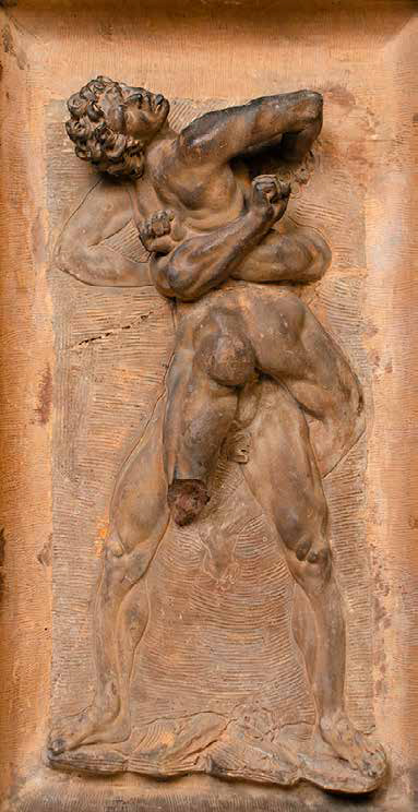 SCUOLA ITALIANA DEL XVIII SECOLO LOTTATORI rilievo in terracotta, cm 65x35,5,x4. Datato in basso verso destra: 1785