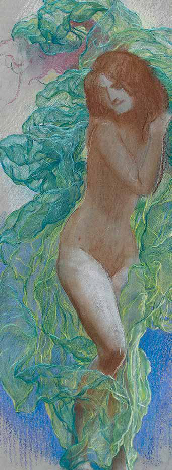 ADOLF HIREMY HIRSCHL Temesvar 1860 – Roma 1933 VENUS pastelli su carta grigia, cm 66x48. Esposizioni: Londra, Matthiesen Fine Art Ltd., Hirémy Hirschl, 11 Giugno - 31 Luglio 1987; Bibliografia: Hiremy Hirschl, catalogo della mostra, Allemandi, Torino 1987, n. 27 (ill.)