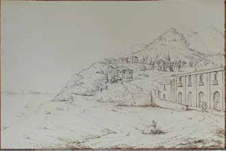 SCUOLA ITALIANA DEL XIX SECOLO VEDUTA COSTIERA china su carta, cm 16,5x25