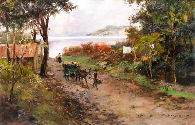 CARLO BRANCACCIO Napoli 1861 – 1920 IL RITORNO DALLA PESCA olio su tela, cm 57x85. Firmato in basso a destra: C. Brancaccio