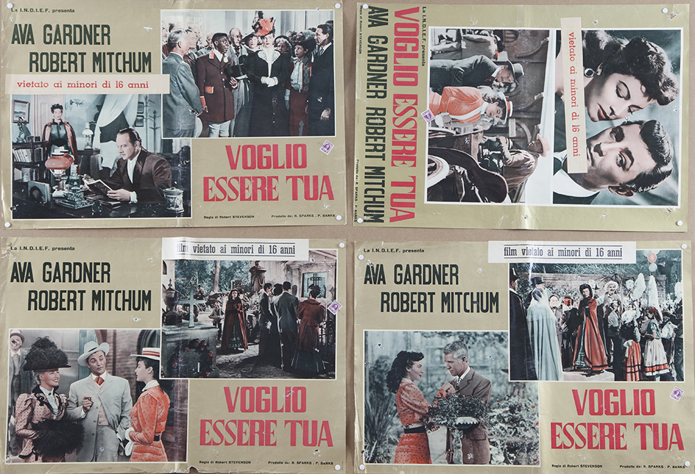 VOGLIO ESSERE TUA (1951) Lotto unico di n. 4 fotobuste, cm 50X70, film con Ava Gardner e Robert Mitchum Condizioni: MEDIOCRE