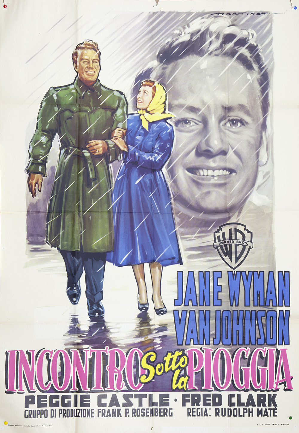 INCONTRO SOTTO LA PIOGGIA (1956) Manifesto, cm 140x100 film con Jane Wyman e Van Johnson firmato in alto a sinistra Condizioni: BUONO