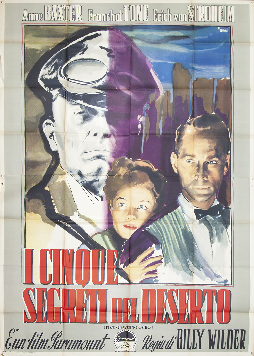 Lotto 67 | I CINQUE SEGRETI DEL DESERTO (1943) Manifesto, cm 200x140 firmato Condizioni:...
