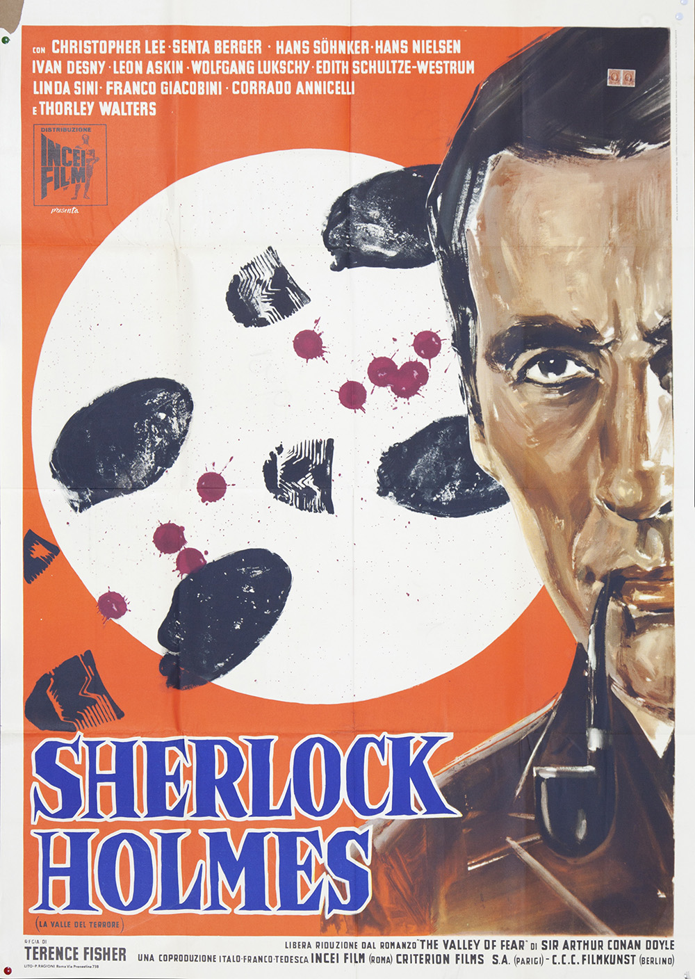 SHERLOCK HOLMES (La valle del terrore - 1962) Manifesto, cm 140x100 film con Cristopher Lee presenza di marca da bollo Condizioni: OTTIMO
