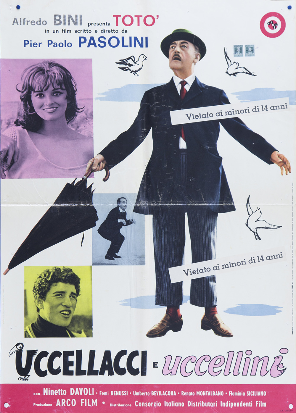 UCCELLACCI E UCCELLINI (1966) Manifesto, cm 93x67 film con Totò presenza di marca da bollo Condizioni: OTTIMO