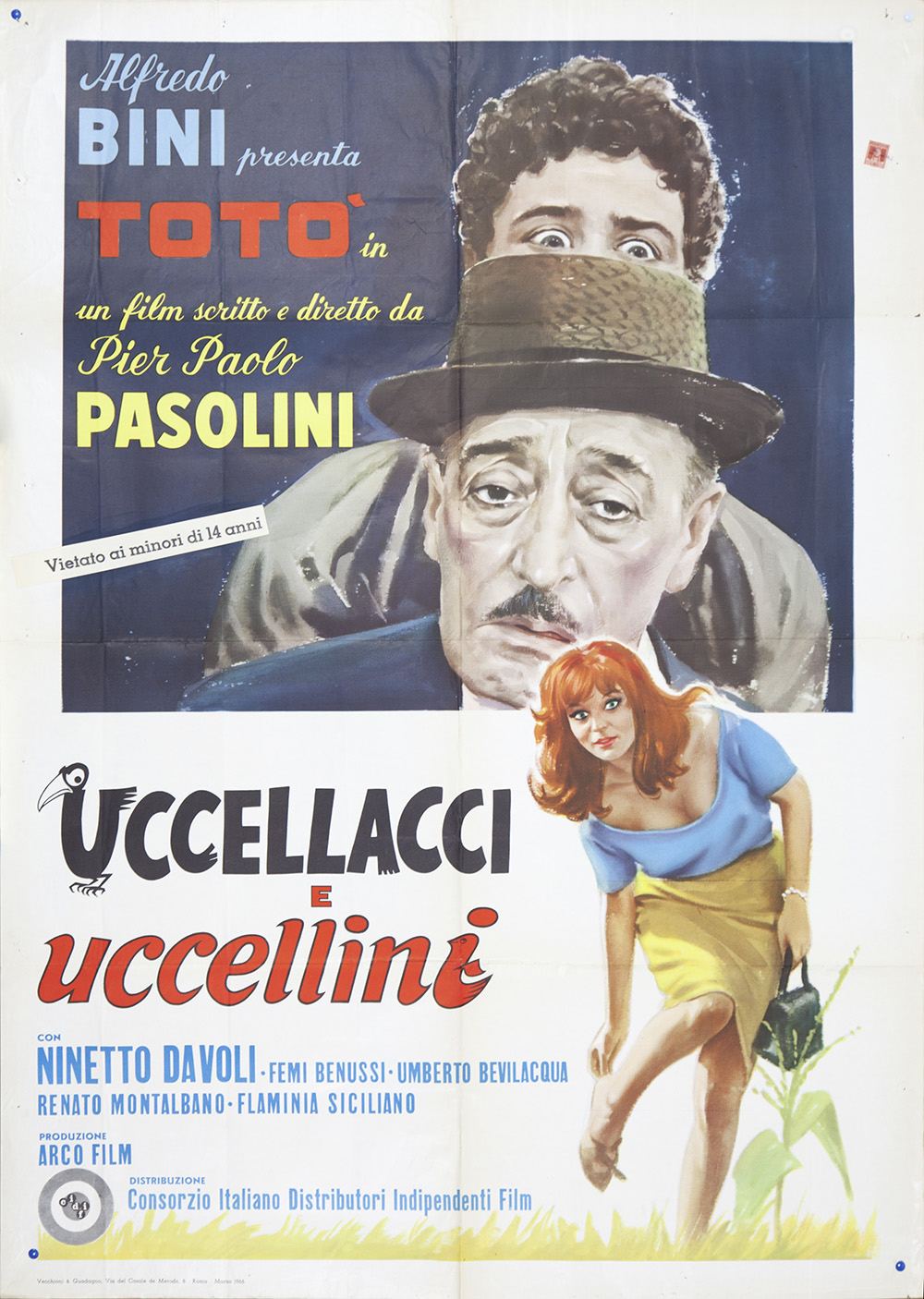 UCCELLACCI E UCCELLINI (1966) Manifesto, cm 140x100 film con Totò presenza di marca da bollo Condizioni: OTTIMO
