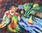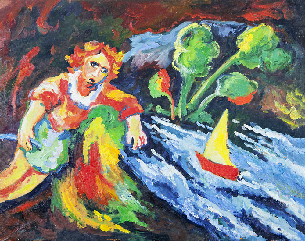 Mimmo Germanà Catania 1944 - Busto Arsizio 1992 "La barca" olio su tela anno 1987 cm 80x100 Al retro: firma e data e titolo + timbro Galleria d' Arte l'Acquario Opera archiviata presso Archivio Generale a cura della Galleria d'Arte l'Acquario su foto