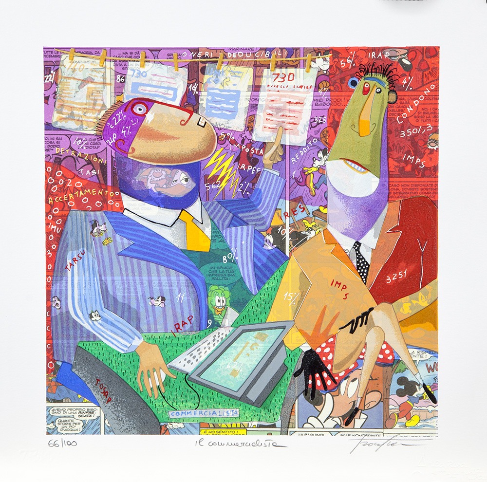 Pino Procopio Guardavalle 1954 Lotto unico di n. 3 serigrafie su carta, cm 33x33 a)"Lo psicologo" esemplare n. 82/100 b) "Il commercialista" esemplare 66/100 c) "L'architetto" esemplare n.94/100 Tutte le opere sono firmate in basso a destra; titolate in basso al centro e numerate in basso a sinistra + timbro a secco Galleria d'Arte La Riva