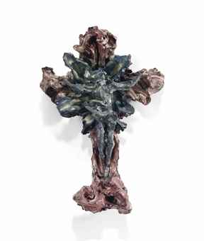 Lucio Fontana (1899-1968) Crocifisso siglato con le iniziali e datato L.F. 48 (sul retro) ceramica policroma cm 46,5x31,5x14 Eseguito nel 1948 Opera registrata presso la Fondazione Lucio Fontana, Milano, n. 3822/1 Provenance Acquisito direttamente dall'artista dall'attuale proprietario negli anni Cinquanta