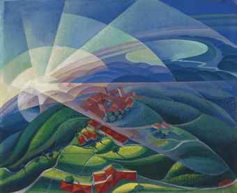 Gerardo Dottori (1884-1977) Aurora volando firmato e datato Dottori XI (in basso a destra) tempera su tavola cm 87,8x107,1 Eseguito nel 1933 Provenance Dono dell'artista a Marinetti Galleria Arte Centro, Milano ivi acquisito dall'attuale proprietario Literature G. Dottori, Aeropittura futurista alla XIX Biennale, in "Stile futurista", n. 1, Torino 1936, p. 32 (illustrato, con titolo Aeropittura) in "L'Assalto", Perugia 19 ottobre 1942 (illustrato) U. Moretti, Gerardo Dottori pittore perugino, Perugia 1957, (illustrato) V. Coletti, Dottori futurista: mostra antologica, Perugia 1968, cat. mostra Perugia, Sala dei Notari, p. 37 (illustrato) A. Sartoris, Gerardo Dottori Futurista, in "Arte Moderna Italiana" n. 55, Milano 1968, n. 34 (illustrato) L. Scrivo, Una personale di Gerardo Dottori: aeropittura futurista a Milano, in "L'Unità", Milano 4 febbraio 1968 (illustrato) G. Ballo, Dottori aeropittore futurista, Roma 1970, n. XL (illustrato) Lussemburgo: retrospettiva di Gerardo Dottori dedicata maggiormente alla sua opera grafica, in "Eurostop", gennaio 1978 (illustrato) E. Dalla Noce, Futurismo senza età in Gerardo Dottori futurista, Milano 1989, cat. mostra Milano, Galleria San Carlo, (illustrato) M. Duranti, Vita artistica. Il Futurismo, in Perugia, "Storia illustrata delle città dell'Umbria", vol. III, Milano 1993, p. 989, n. 208 (illustrato) M. Duranti, Alla difesa dell'arte coi pantaloni in prestito, in "Arte", Milano marzo 1993, p. 85 (illustrato) M. Duranti, Aeropittura e aeroscultura futuriste, Perugia 2002, p. 76 (illustrato) M. Duranti, Gerardo Dottori. Catalogo generale ragionato, Città di Castello 2006, vol. I, p. 199 (illustrato); vol. II, p. 506, n. 296-75, n. 104 (illustrato)