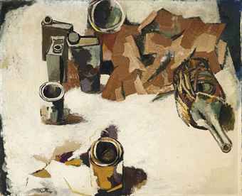 Renato Guttuso (1912-1987) Natura morta firmato e datato Guttuso '58 (in basso a sinistra) olio e collage su tela cm 92x112 Eseguito nel 1958 Provenance Elio Vittorini, Milano ivi acquisito dall'attuale proprietario Literature E. Crispolti, Catalogo ragionato generale dei dipinti di Renato Guttuso, Milano 1985, vol. II, p. 124, n. 58/78 (illustrato)