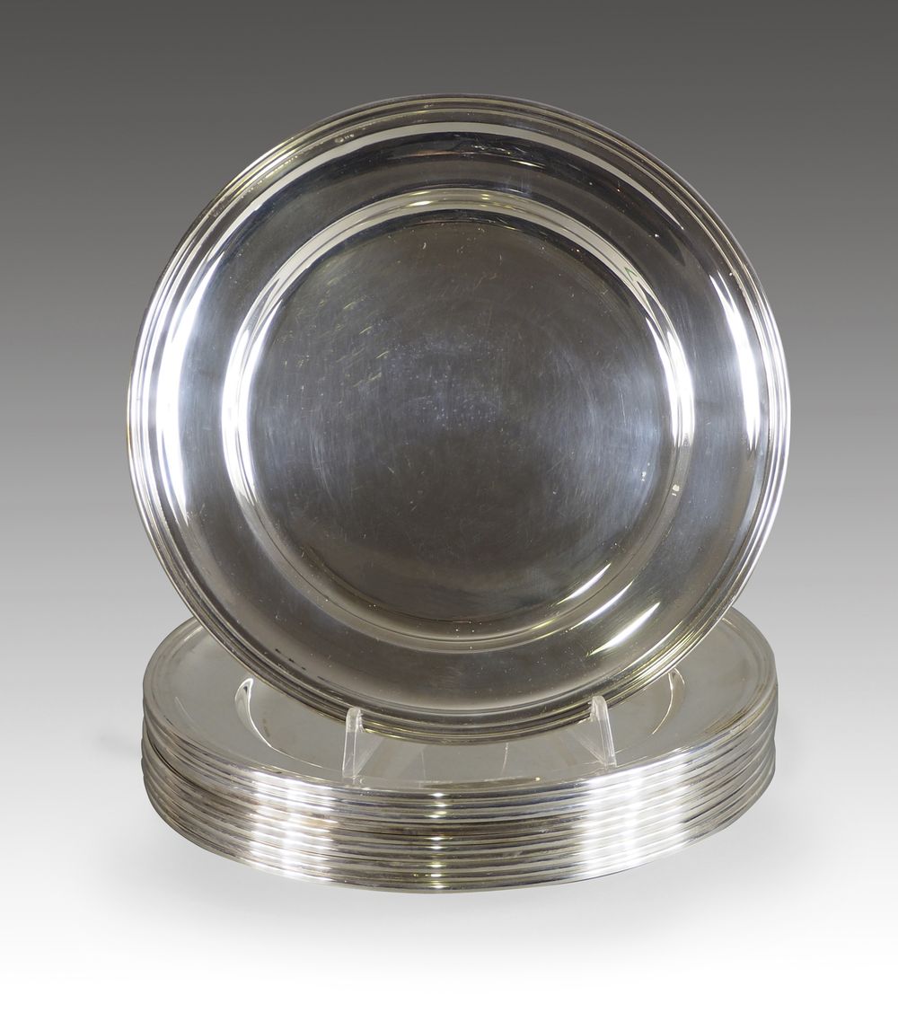 Lotto di 12 sottopiatti in argento. Diam. cm. 28. gr. 4280.