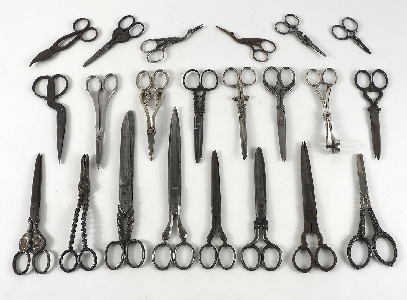 Lotto di varie forbici antiche in ferro per usi diversi.