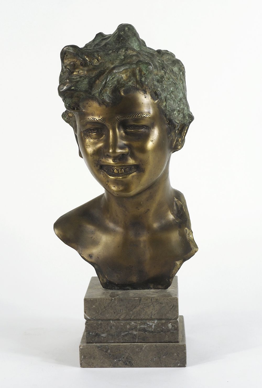 Giovanni De Martino 1870-1935 "Busto di scugnizzo" h. tot cm. 42 - scultura in bronzo a due colori su base in marmo Firma al retro.