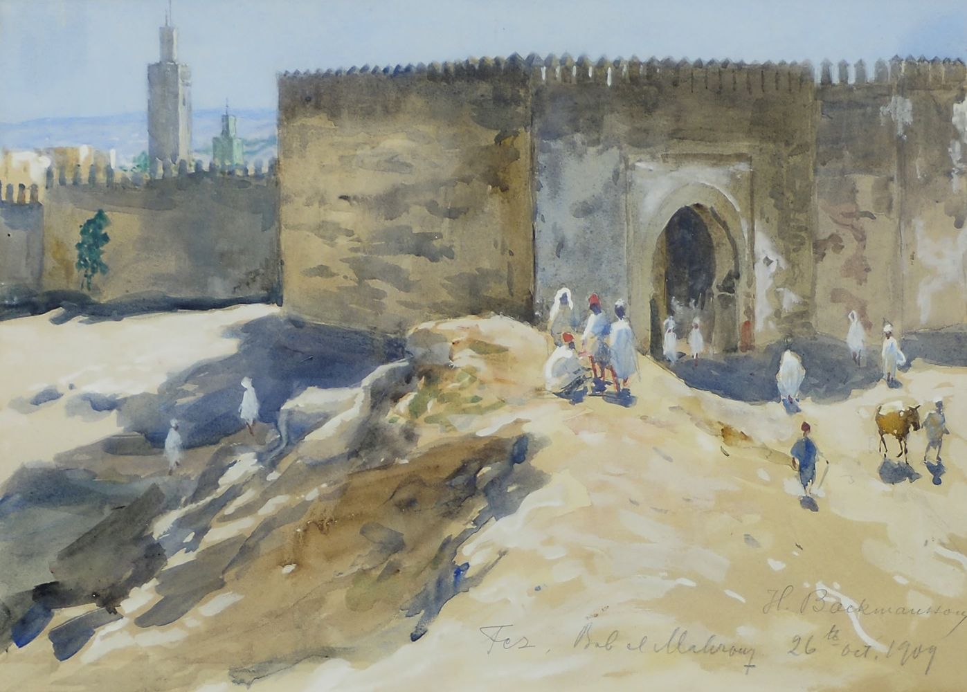 Hugo Elias Backmansson 1860-1953 "Paesaggio orientale" cm. 23x33 - acquerello su carta Firmato b. a d.