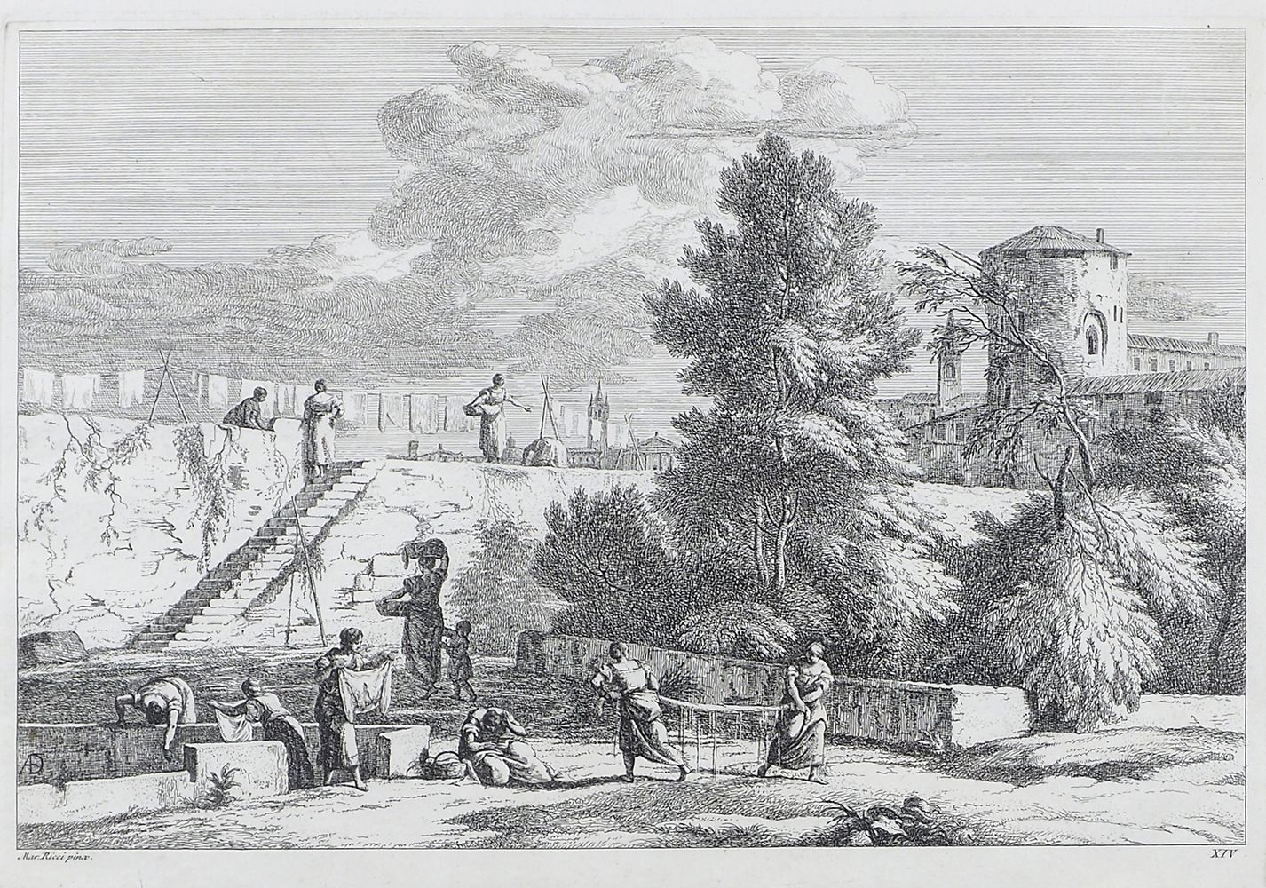 Lotto 400 | "Paesaggio con figure" cm. 32x43 - Mar. Ricci pinx.