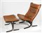 Chaise longue con pouff modello Siesta in legno e cuoio. Disegno di I. Relling, 1960.